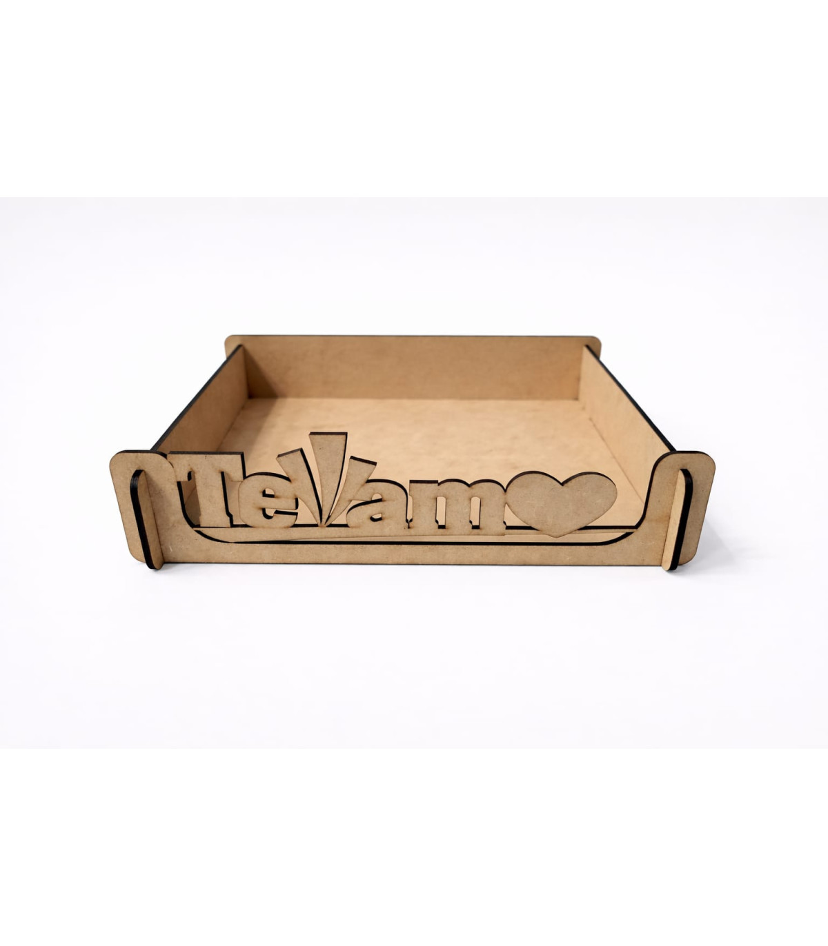✨ Bandeja decorativa de madera MDF con el mensaje “Te amo” acompañado de un corazón, realizada mediante corte y grabado láser. Su diseño limpio y equilibrado la hace ideal para presentar regalos, dulces o pequeños detalles de forma elegante y emotiva. 💝 Una pieza sencilla y cálida, perfecta para sorprender en momentos especiales.